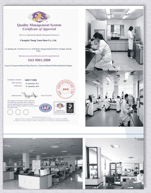 CYS always consider the quality is the most important,  All of our products are produced according to standard GB/T1549-1994 GB/T18371-2001, GB/T18372-2001, GB/T18369-2001, GB/T4202-2001, and ISO9001-2008 quality controlled. Our quality already been proved by our clients from more than 30 countries, some of our clients are very famous and reputated glass fiber producers, we OEM for them with their brands also earned very good feedbacks .