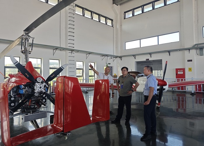 2024 年 9 月10日,由湖北孝感市高新区党工委副书记舒俊带领的考察团在我司开启了一场意义重大的考察之旅,考察团此行目的地为金堂的淮州机场以及成都云皓川通航公司,全程由我司余怀权余总进行项目讲解。