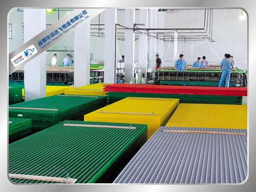 FRP Grating is produced by wet moulding and hot curing in a heated mould. The reinforcement consists of continuous fibreglass rovings in alternating layers. So the loads are distributed evenly in all directions.
